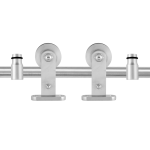 - Twee gelagerde, stalen hangers die met kogellagers over de schuifdeurrails lopen en aan de onderkant gemonteerd worden aan de deur;
