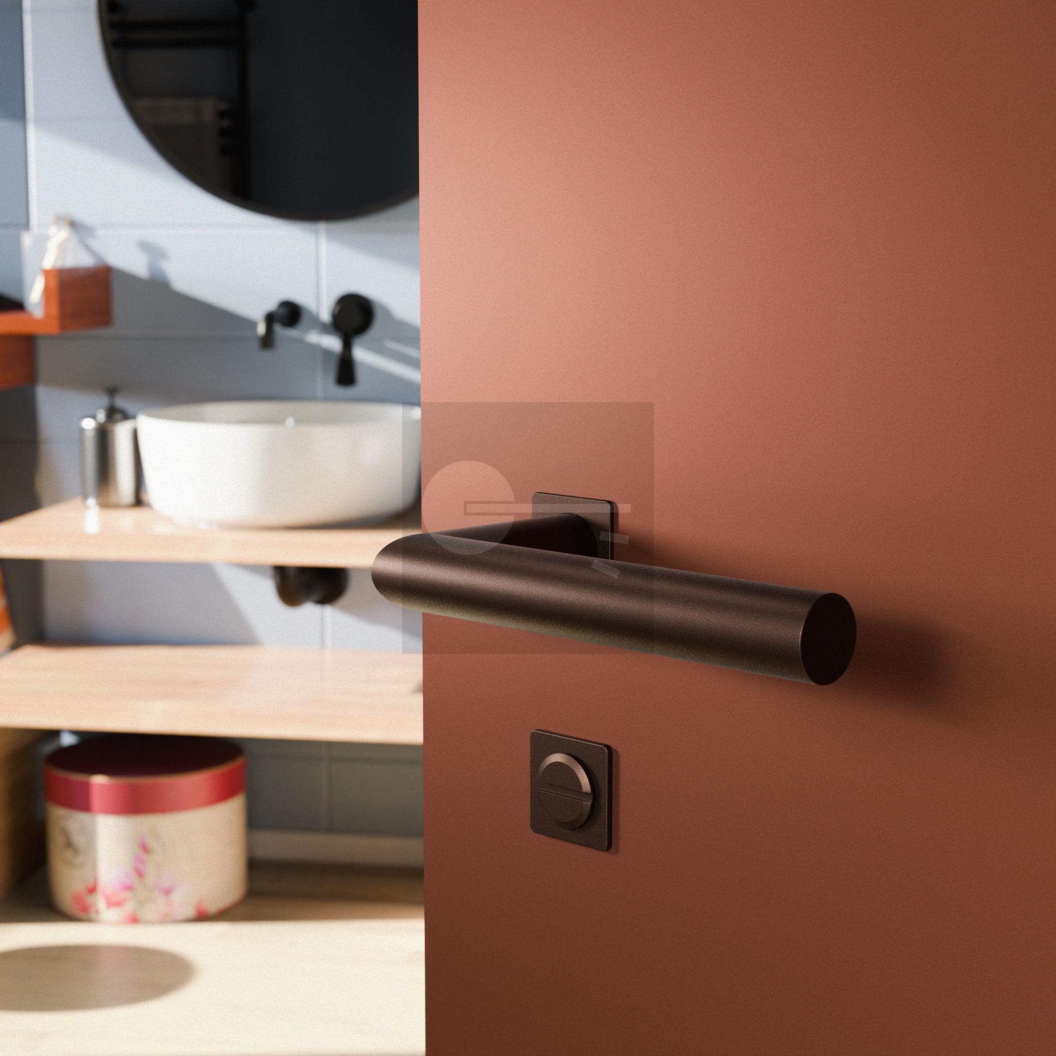 GPF1142.A2 Minimalistische Toiletgarnituur 28x28x1,5mm stift 8mm Bronze blend met GPF0140.09 vrij- en bezetslot WC72/8